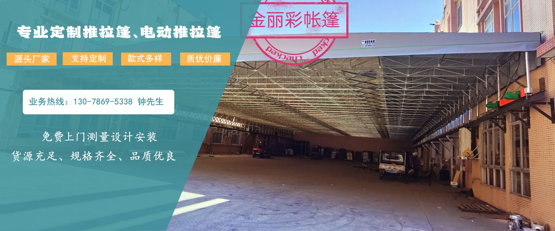 中山市金麗彩帳篷有限公司成立于2002年,是一家集遮陽篷配件生產(chǎn)、批發(fā)戶外休閑用品的專業(yè)彩蓬安裝制做工程公司,在廣東地區(qū)擁有大量彩樣板工程實(shí)例,公司技術(shù)力量成熟,專注承接定制制作安裝各種遮陽、遮雨、固定或活動(dòng)蓬、展覽蓬、鋁合金無線遙控電動(dòng)蓬、廣告蓬、歐式造型蓬、戶外休閑傘等產(chǎn)品。本公司還可以根據(jù)用戶需求制作各款大型戶外停車場帳蓬、款式新穎、質(zhì)量可靠、價(jià)格實(shí)惠。公司位于中國廣東省中山市沙溪鎮(zhèn),交通方便,物流快捷。金麗彩帳篷本著“客戶為先,誠信至上”的原則,熱誠歡迎各界朋友前來我司參觀、考察、洽談業(yè)務(wù)。